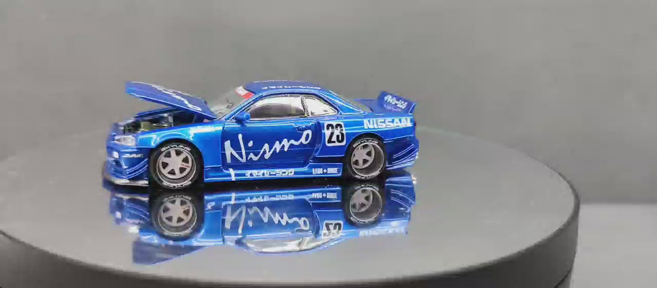Descubre la esencia del legendario Skyline GT-R (R34) Nismo #055 de Kaido House, en escala 1:64. Su base y cuerpo metálicos, llantas de goma con aros de aluminio, y el cofre abatible que revela un motor minuciosamente detallado, hacen de este modelo una pieza inolvidable. El volante a la derecha aporta realismo y autenticidad, capturando el espíritu original del JDM.