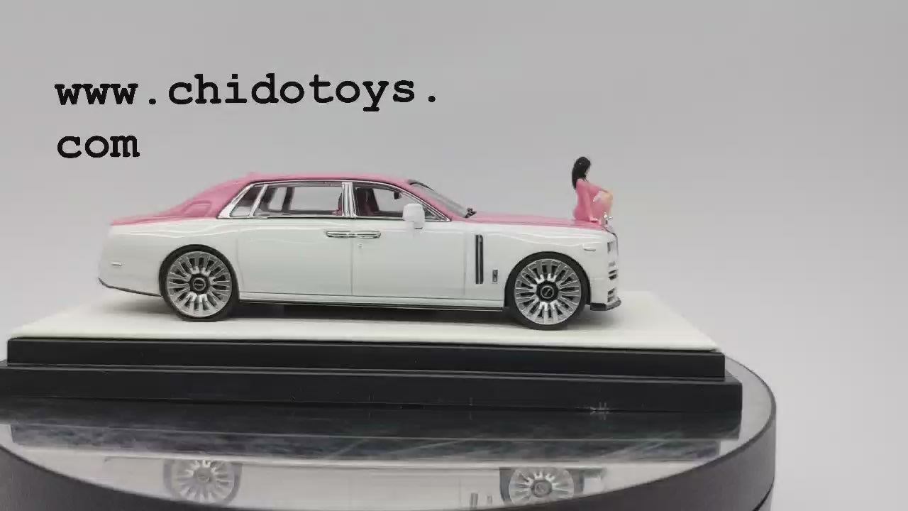 Escala 1:64, Die-Cast, llantas de goma, incluye base que simula piel color blanco, capelo de acrílico y figurilla.