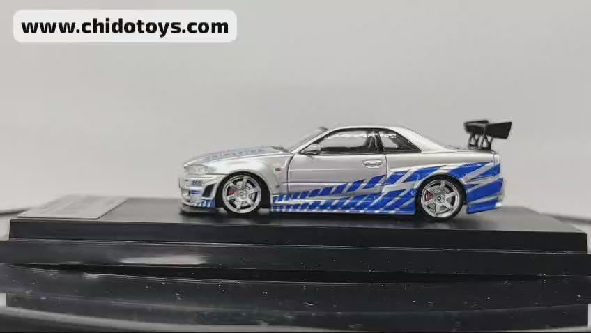 Auto a escala marca Fast Speed modelo Skyline GT - R R - 34 plata - azul - Chido Toys