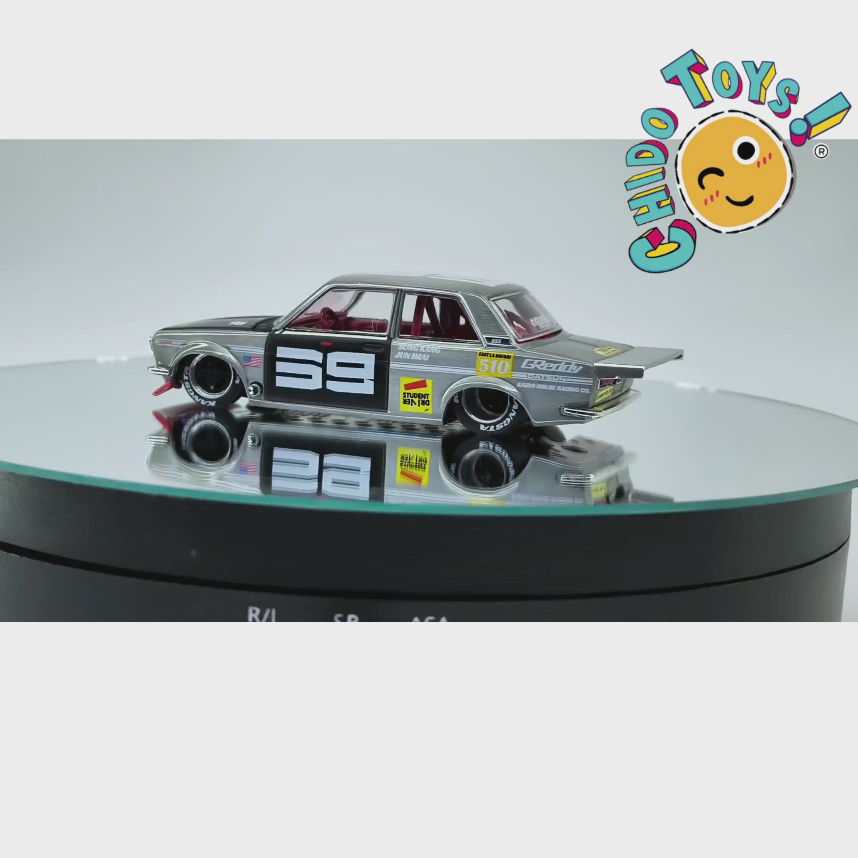 La conspiración perfecta en miniatura: este Kaido House x Mini GT convierte al Datsun 510 Pro Street #003 en el as bajo la manga de tu vitrina. La jugada se reconoce al instante: versión CHASE, carrocería raw sin pintura que deja ver el metal y interiores rojos exclusivos que prenden la mirada.